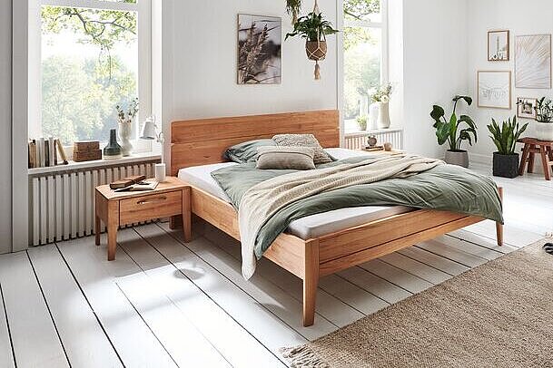 Holz neigt dazu, immer für einen Gleichgewichtszustand zwischen dem eingelagerten Wasser und der in der Luft befindlichen Feuchte zu sorgen. Maßgeblich für das Holzfeuchtegleichgewicht sind die Zimmertemperatur sowie die relative Luftfeuchtigkeit in der Umgebung. Besonders im Winter, wenn die Räume beheizt werden, sinkt die Feuchtigkeit spürbar und Massivholz sorgt dann für den passenden Ausgleich im Raum. Dieser Effekt ist besonders wirksam im Schlafzimmer, falls auch hier die Einrichtung überwiegend aus Massivholzmöbeln besteht: Im Schlaf geben wir viel Feuchtigkeit durch Atmen und Schwitzen ab. Die massiven Möbel können die Feuchte aufnehmen und beim Lüften am nächsten Morgen wieder zum Wohle des Wohn- und Schlafklimas zurückgeben. Alle diese Gründe tragen zum Wohlbefinden der Massivholzmöbelbesitzer bei und unterstreichen ein gesundes Wohnen.